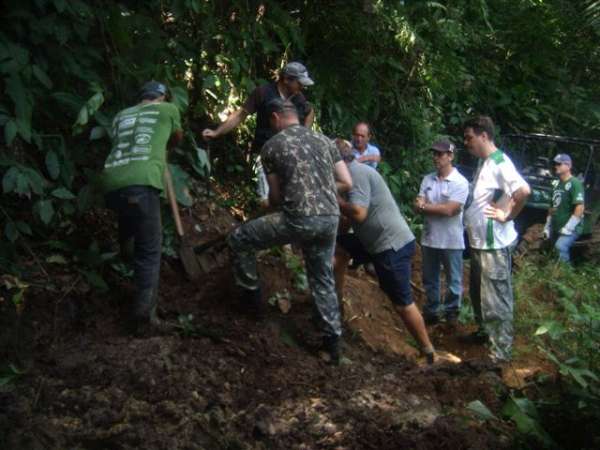 num sabadão pra lá de bonito nos bandeamos devidamente equipados lá pra Rio dos Cedros com o intuito de abrir uma trilha na encosta onde trator não entra no trajeto - missão dada, missão cumprida !! ainda será preciso uma pequena intervenção para dar mais segurança numa passagem sobre pedra mas de qualquer forma, já passa !.